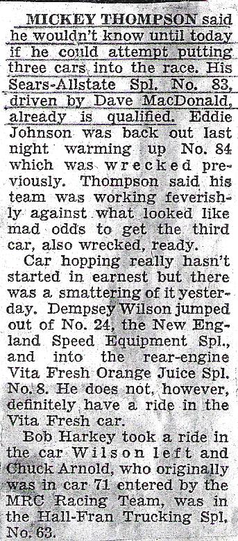 watch Bump Day festivities. Mickey asked him to give one last chance at qualifying the #82 car (which was really MacDonald's #83 car).
