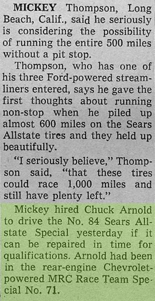 Mickey and Dave signed a two-year Indy contract for 1964/1965.