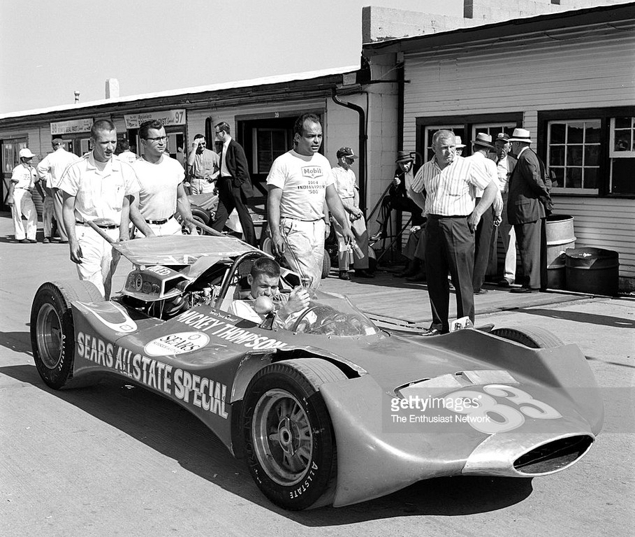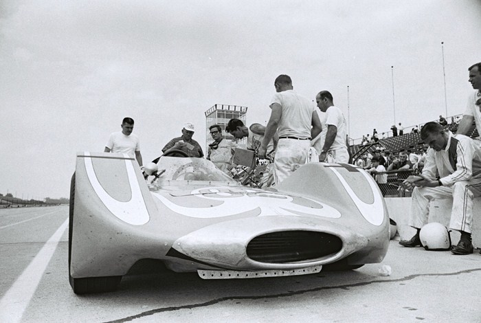 Mickey Thompson's new design was a dramatic departure from the traditional open wheel Indy racer. Thompson was a brilliant innovator