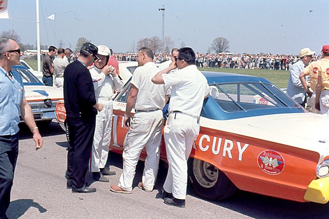 Duane Carter waiting for Dave MacDonald to return before setting out in Thompson's 83 car. [Dave Friedman/The Henry Ford]