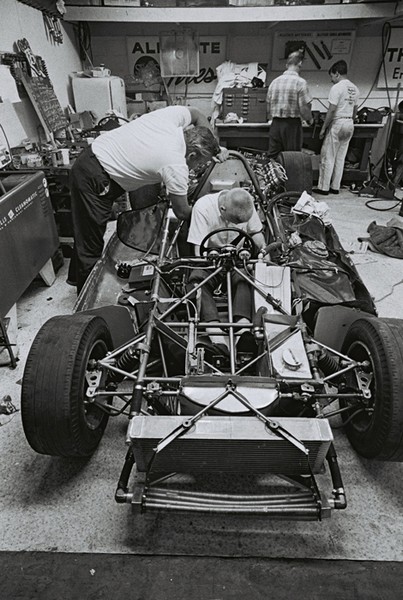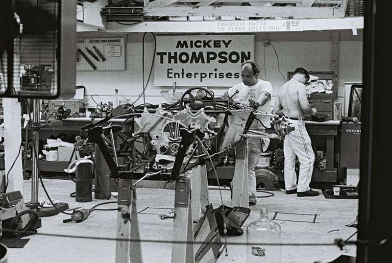 Thompson, Bryant and the rest of the crew worked tirelessly to get the cars ready, right up until the night before the race. (Flip Schulke)