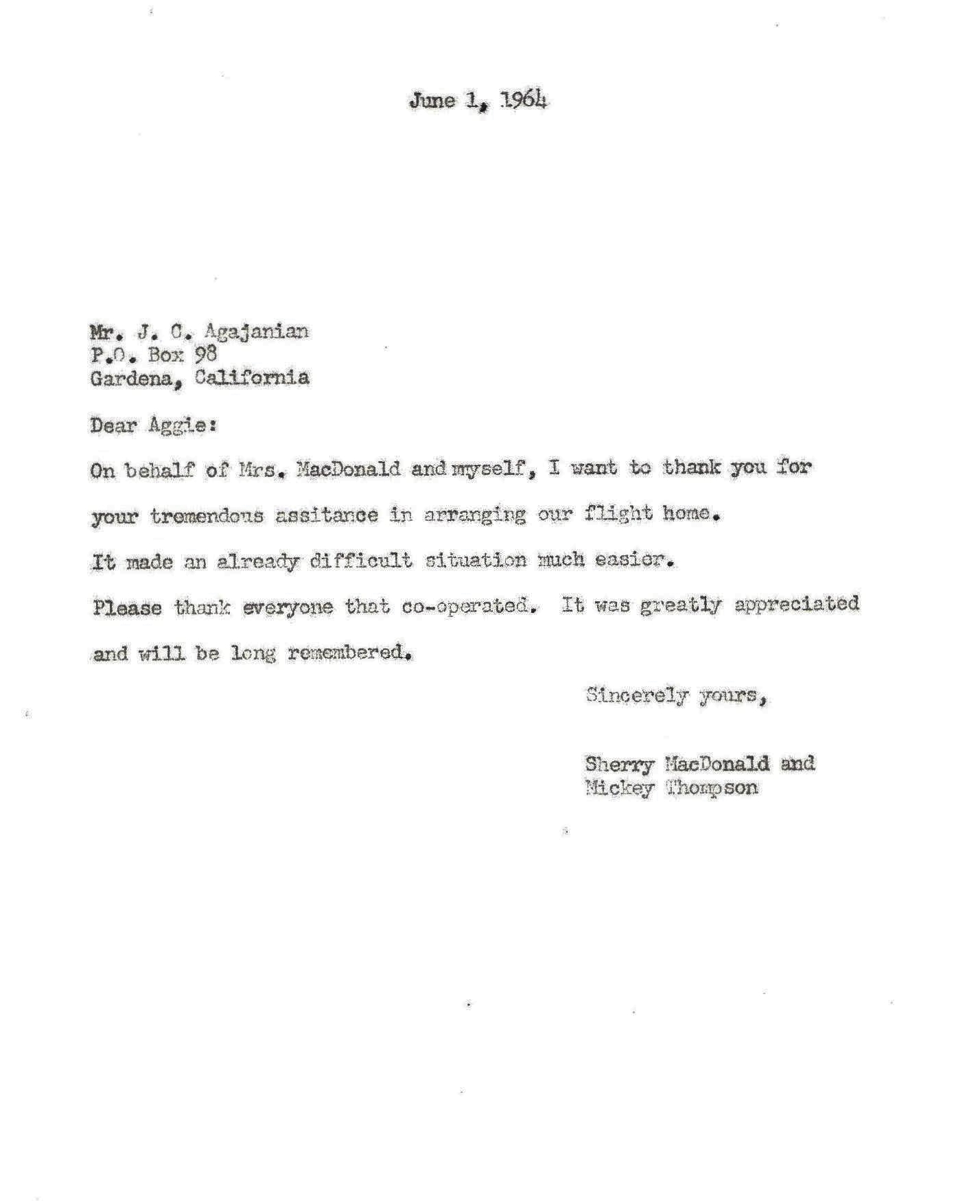 JC Agajanian was kind enough to offer Mickey and a distraught Sherry MacDonald a ride back to California on his chartered plane.