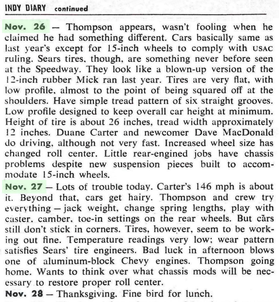 Photos below are from the November 1963 tire test session at the Speedway. Testing scheduled for five days beginning on the 26th with