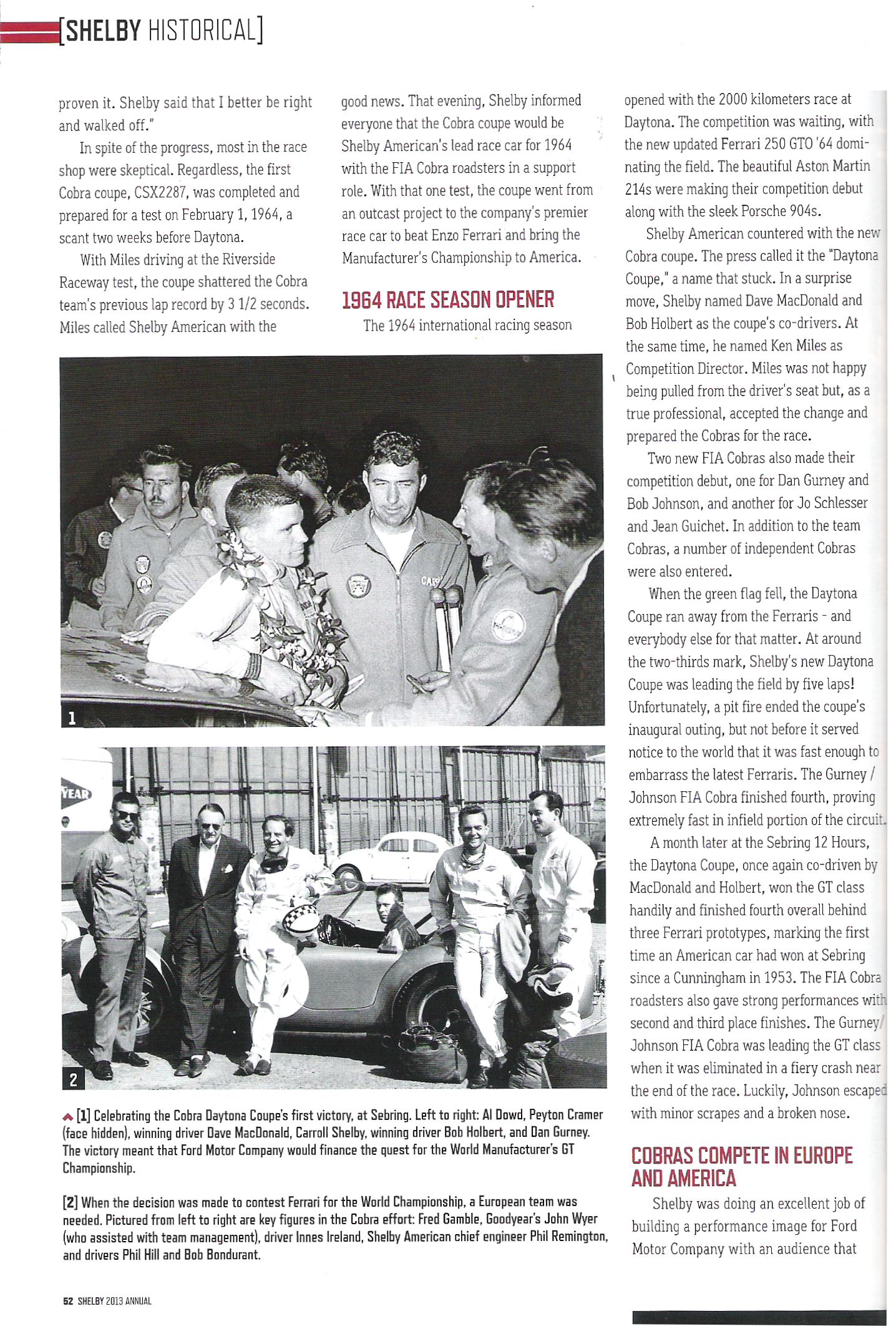 Article by Austin Craig in the 2013/14 Shelby American Annual. Mr. Craig's article recaps Shelby American's 2nd season of racing - 1964. Mr Craig