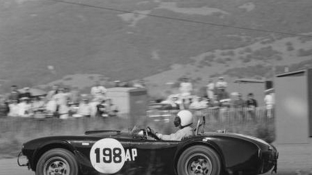 Dave MacDonald blows by Guldstrand is all alone out front in his Cobra Roadster. Rev's Digital Library ph