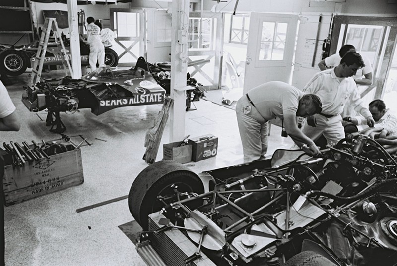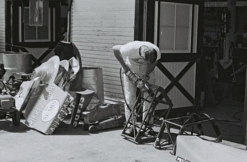 Thompson, Bryant and the rest of the crew worked tirelessly to get the cars ready, right up until the night before the race. (Flip Schulke)